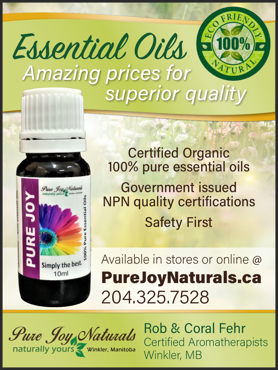 Pure Joy Naturals is owned by Certified Aromatherapists Rob and Coral Fehr, from Winkler, MB. They are members of the Essential Oil Safety Board of Canada and have made it their primary goal to offer products, information and training on essential oil safe practices.