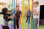 Play equipment have been specially chosen with sensory processing and motor function in mind, similar to an occupational therapy gym.